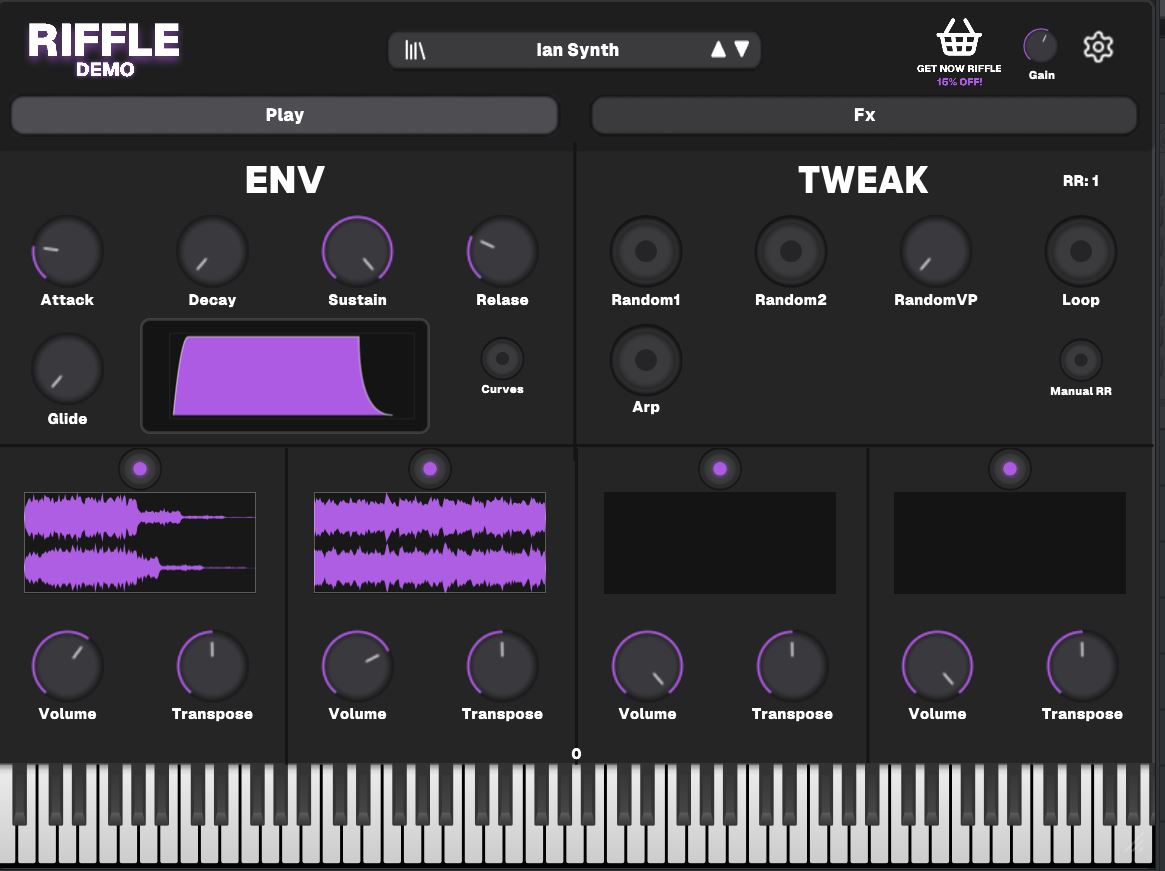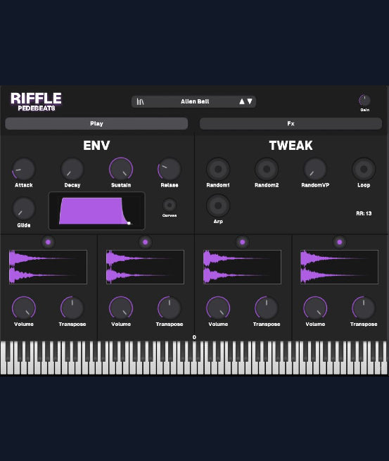 RIFFLE is a multi-key instrument VST, it changes the sound every time you play a note, giving you fresh variation and randomness that no other plugin offers.